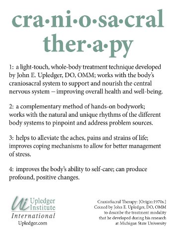 CranioSacral Therapy (CST) was pioneered and developed by osteopathic physician John E. Upledger following extensive scientific studies from 1975 to 1983 at Michigan State University, where he served as a clinical researcher and Professor of Biomechanics.